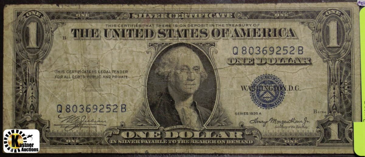 A)1935 USA 1 DOLLAR SILVER CERTIFICATE BLUE SHIELD