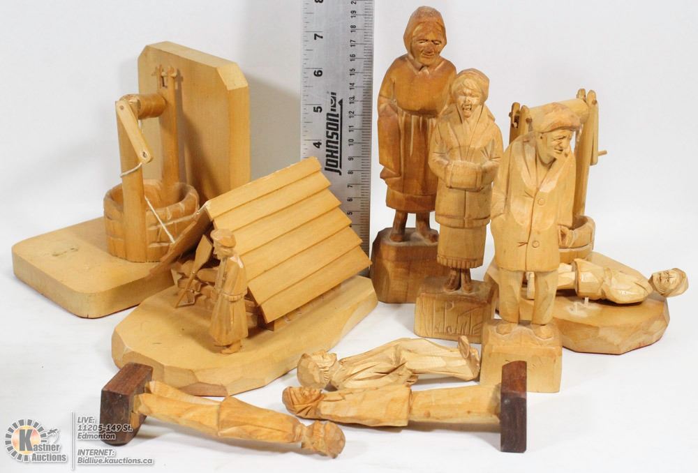 A BOX WITH 9 CARVINGS BY R.F. CARON, QUEBEC