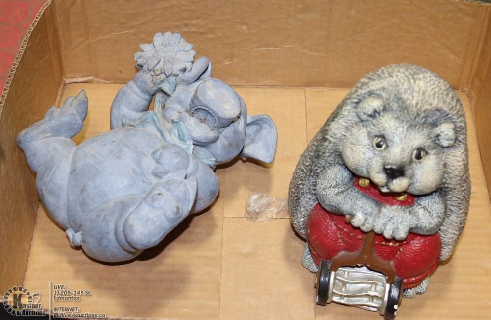 A GARDEN HEDGEHOG AND A PIG FIGURINE