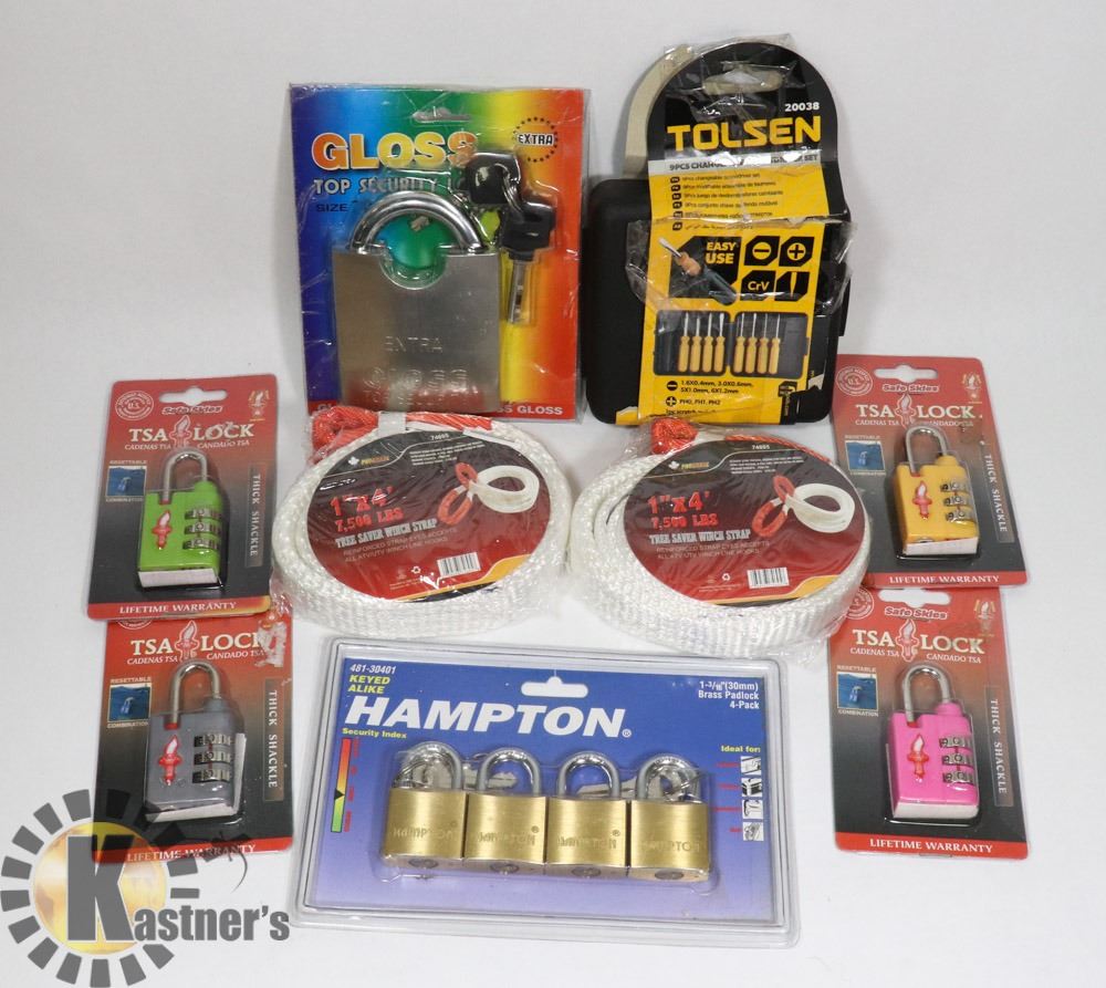 WINCH STRAPS 1" X 4", VARIETY OF LOCKS & MORE. HOME