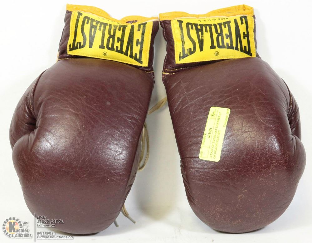 A PAIR OF EVERLAST LEATHER 12 OZ BOXING GLOVES