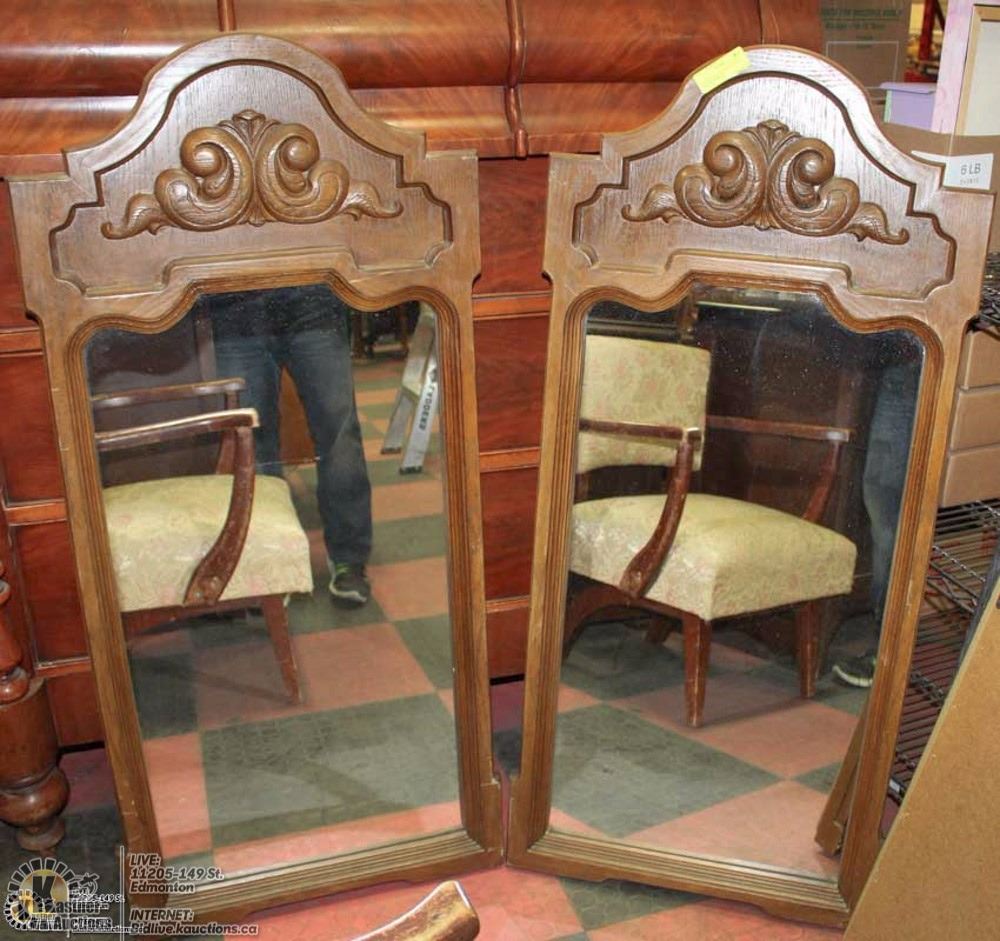 A PAIR OF HAND CARVED WOOD FRAMED MIRRORS