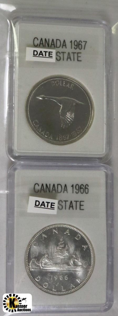 AA) 2PCS CAN. SILVER DOLLAR 1966, 1967