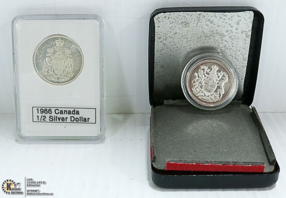 ALBERTA 75TH ANN. COIN IS .999 PURE SILVER + 1966 CANADA $.50