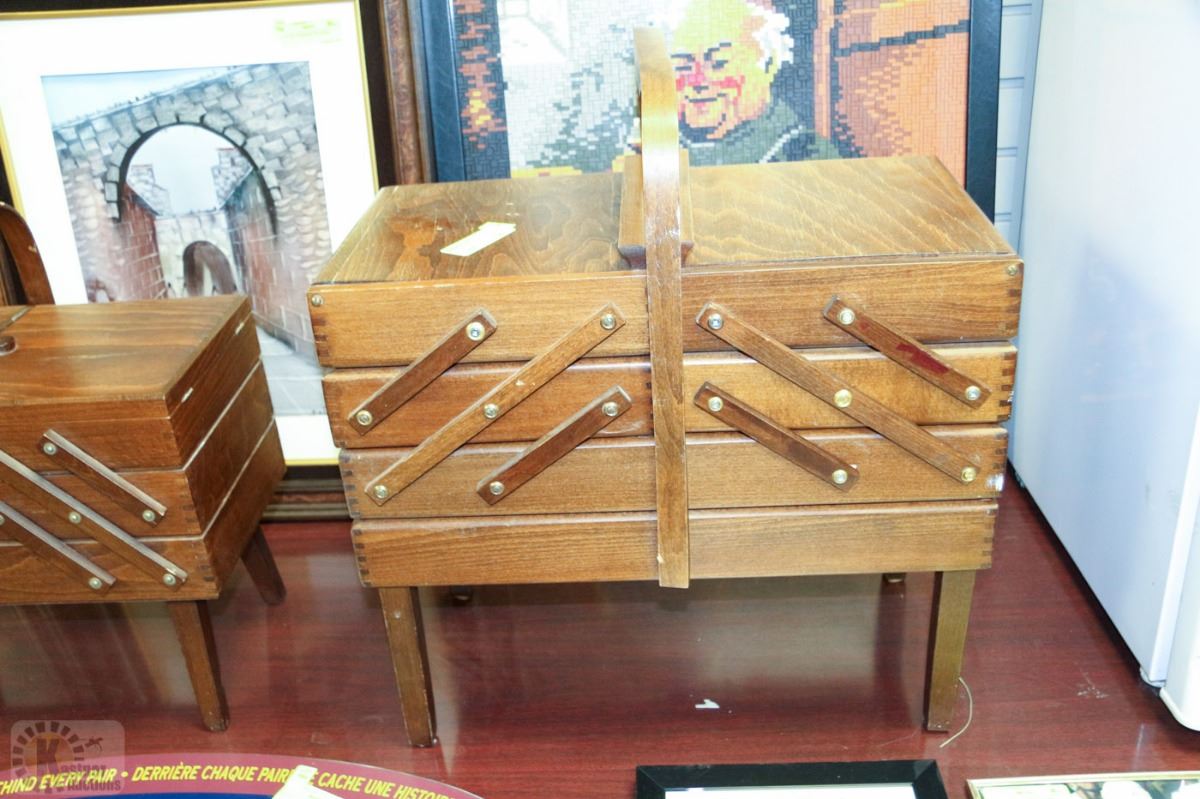 ACCORDIAN WOOD SEWING BASKET ON CHOICE