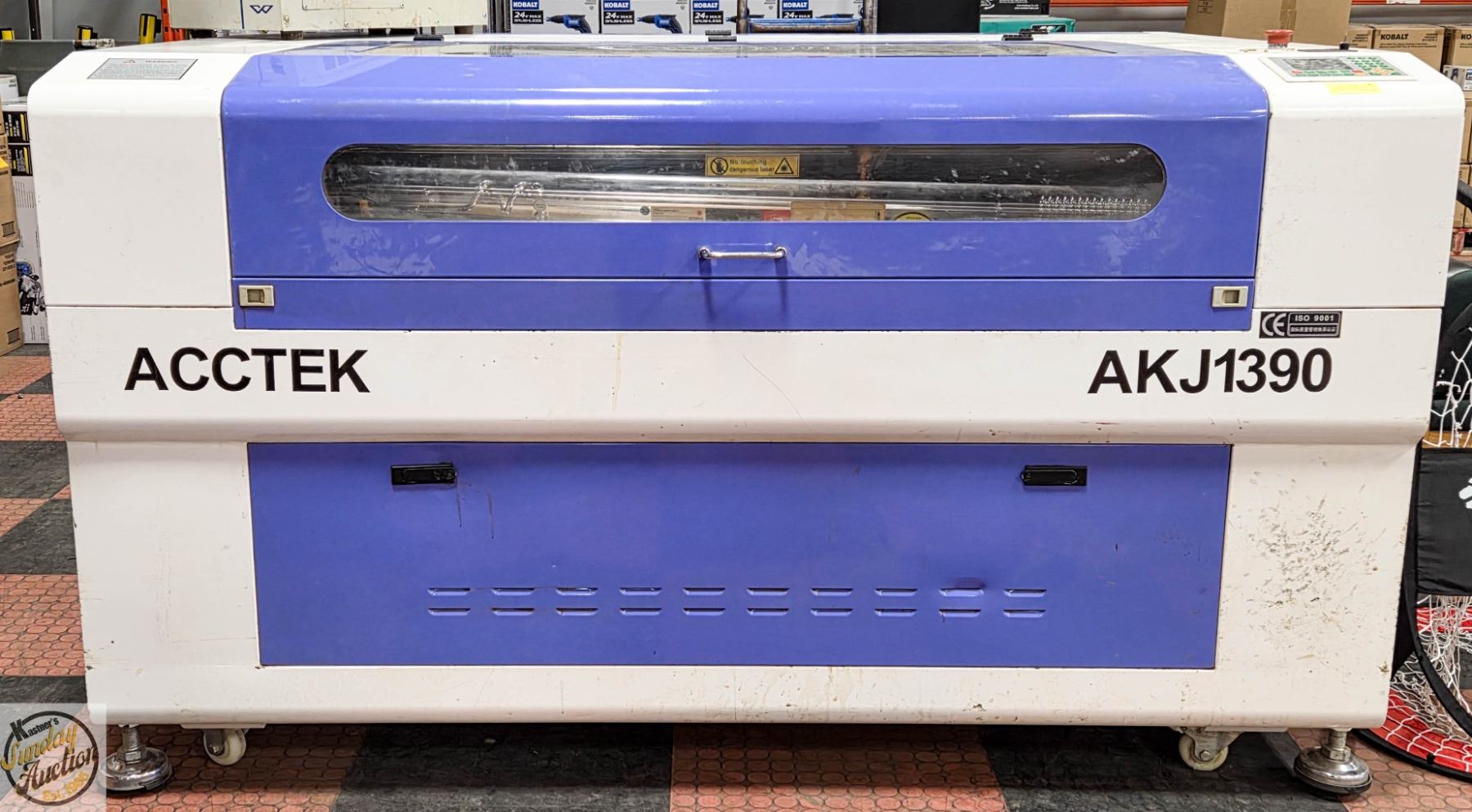 130-WATT TUBE, COMES WITH CE-5200 CHILLER, HONEYCOMB CUTTING GRID, USB DRIVE WITH ORIGINAL SOFTWARE, USED TO CUT/ENGRAVE PLYWOOD, MDF AND ACRYLIC. MACHINE WEIGHT 450KG (992LBS) **ALL ITEMS MUST BE REMOVED BY 5PM SATURDAY, MAY 17TH 2025. ALL REMAINING ITEMS WILL BE SUBJECT TO A $6.00 PER DAY STORAGE CHARGE. ANY ITEMS REMAINING AFTER MONDAY, JUNE 2ND 2025 WILL BE CONSIDERED FORFEITED. NO REFUNDS WILL BE ISSUED FOR FORFEITED ITEMS. TO SCHEDULE A PICK UP APPOINTMENT CLICK HERE