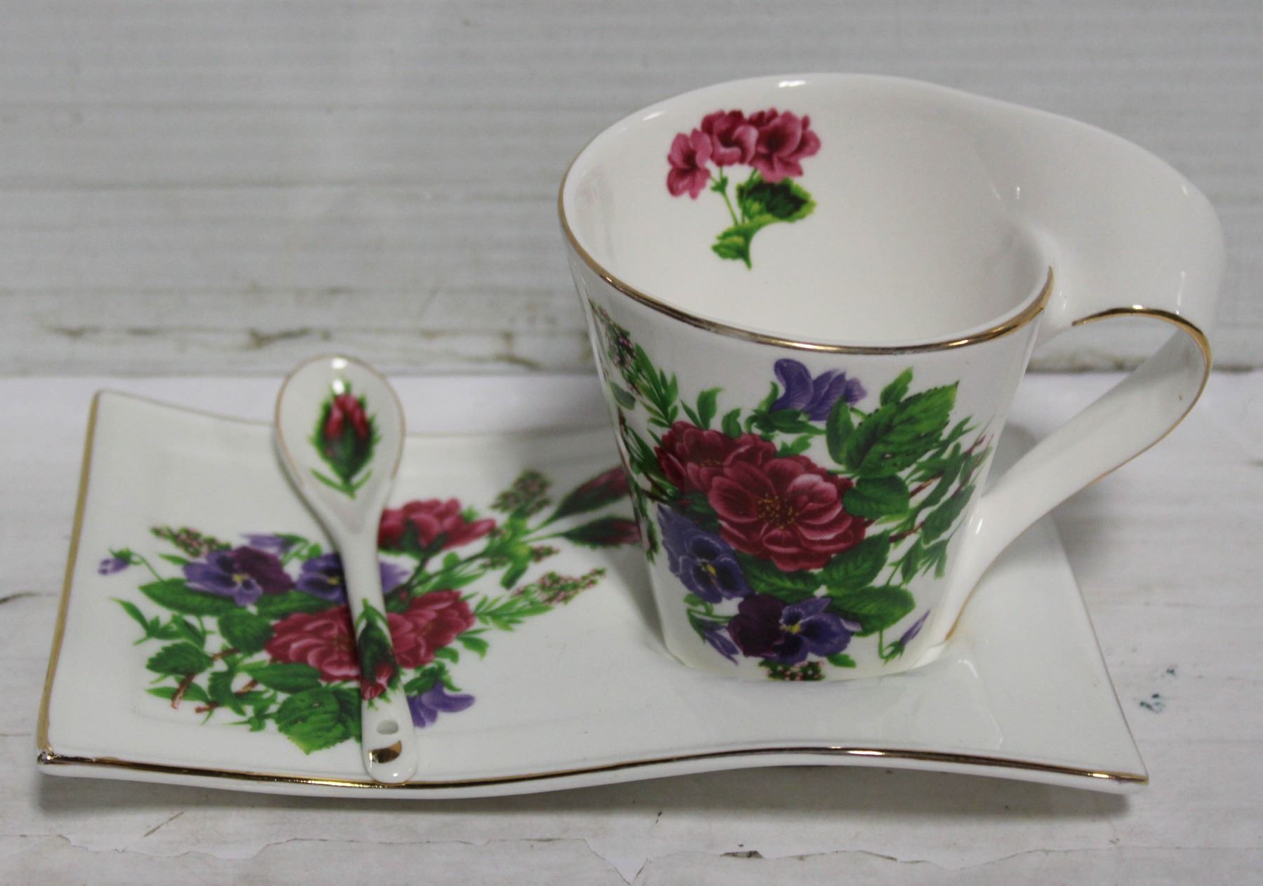 ADELINE FINE PORCELIN FLORAL TEA SET OF CUP PLATE