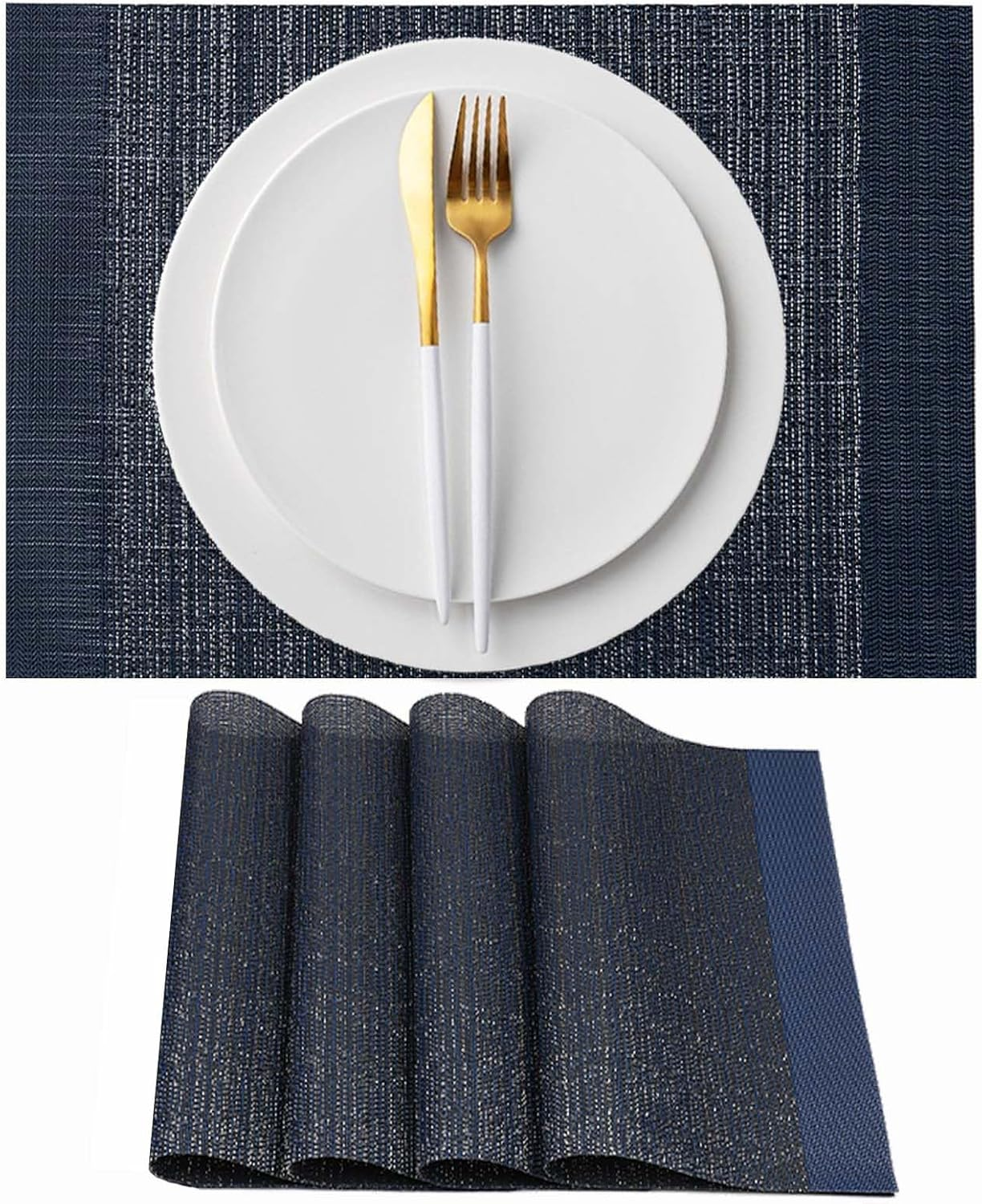 AHHFSMEI PLACEMATS SET OF 4 WOVEN VINYL PLASTIC 18.1X13 INCHES PLACE MATS NON-SLIP HEAT RESISTANT WASHABLE EASY CLEAN TABLE MATS(NAVY BLUE 4)