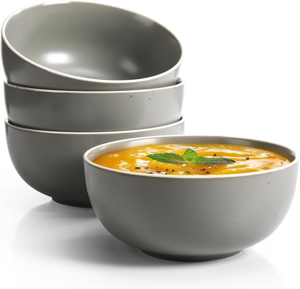 AISBUGUR CEREAL BOWL, CERAMIC BOWLS SET OF 4, 26OZ LARGE SOUP BOWLS FOR KITCHEN DISHWASHER & MICROWAVE SAFE, PERFECT FOR CEREAL, SOUP, OATMEAL, SALAD, PASTA, DESSERT, RICE, GRE