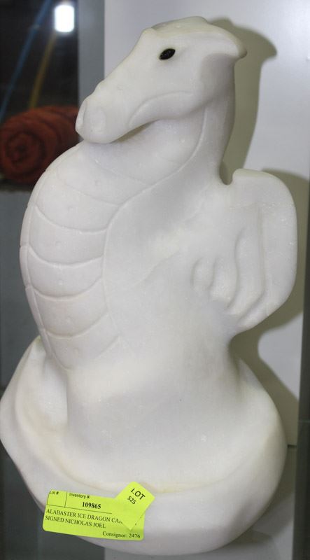 ALABASTER ICE DRAGON CARVING SIGNED NICHOLAS JOEL