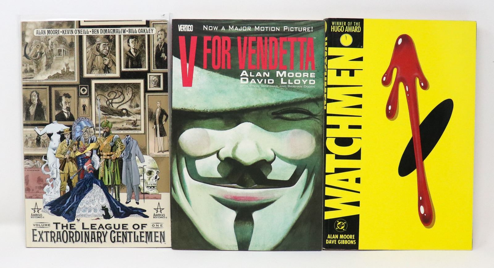 WATCHMEN, V FOR VENDETTA AND THE LEAGUE OF EXTRAORDINARY GENTLEMEN; TRADE PAPER BACKS; TPB