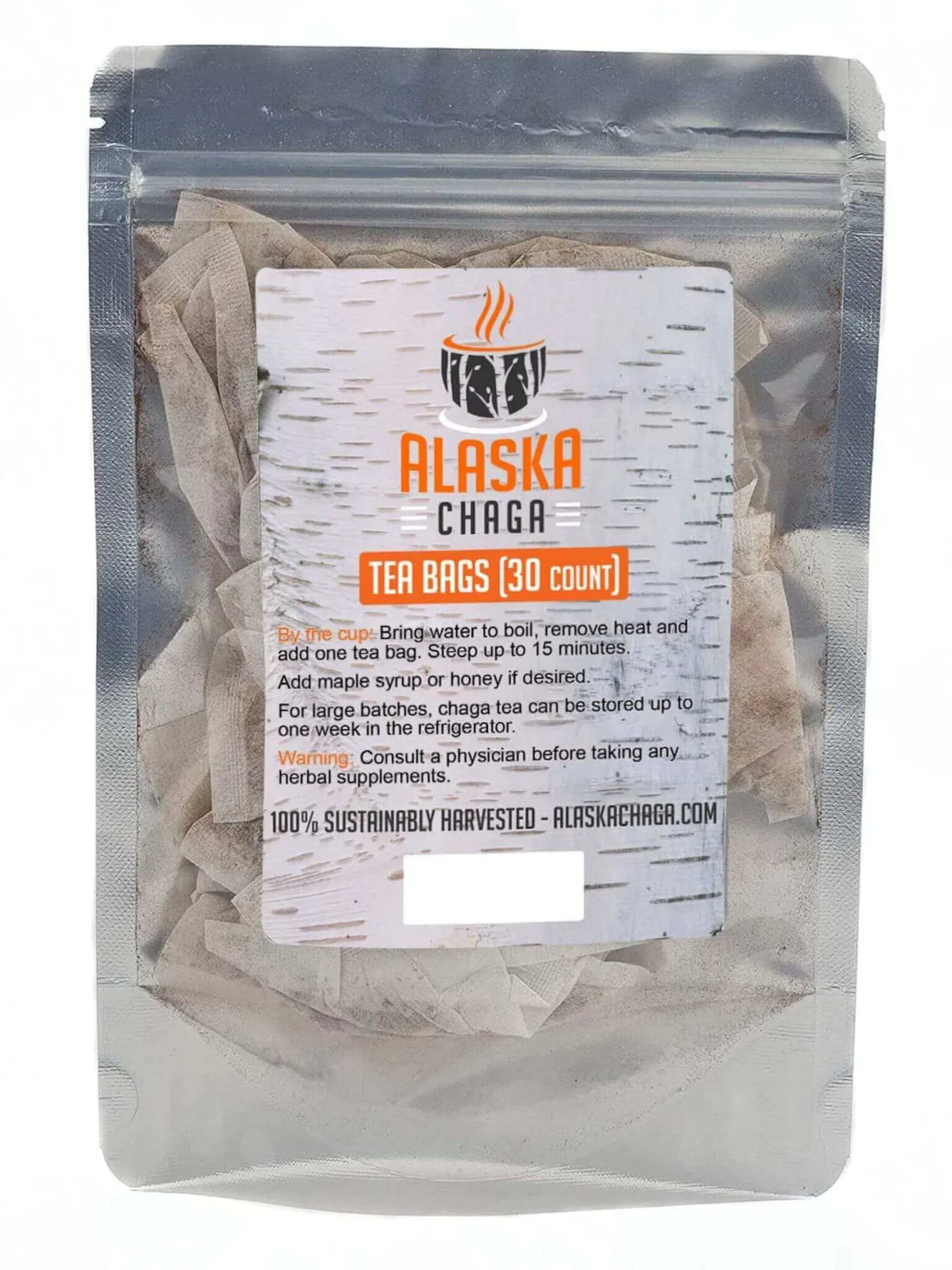 ALASKAN WILD CHAGA MUSHROOM TEA BAGS - SUSTAINABLY HARVESTED, ORGANIC, NON-GMO, GLUTEN FREE