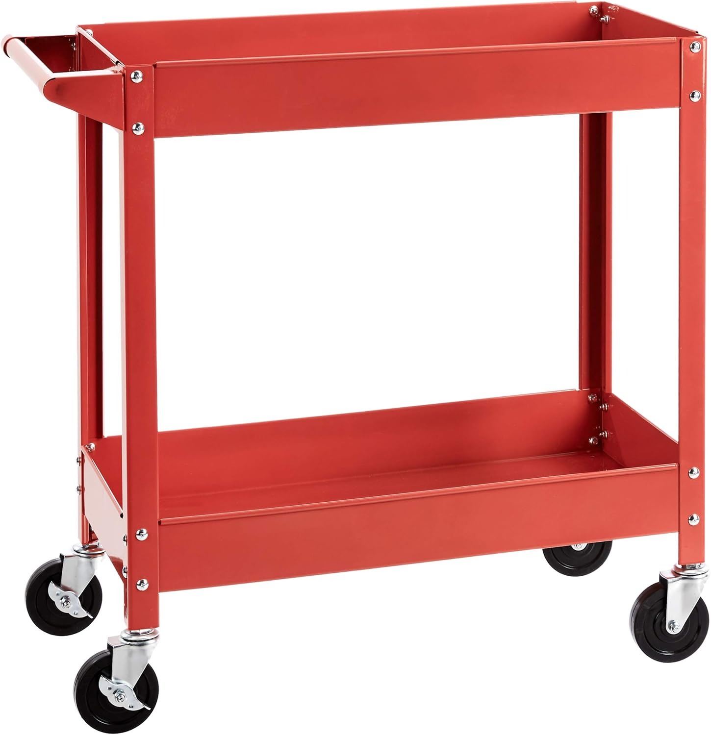 AMAZON BASICS STEEL 2-SHELF MULTIPURPOSE TUB UTILITY/SUPPLY CART WITH 181 KILOGRAMS CAPACITY - RED