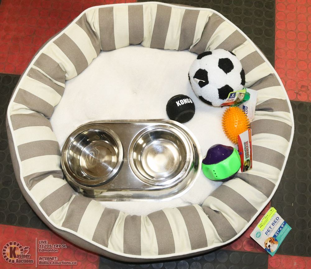 31"X9" WITH STAINLESS STEEL DOUBLE DISH BOWL AND ALL KING BRAND TOYS .. PETS
