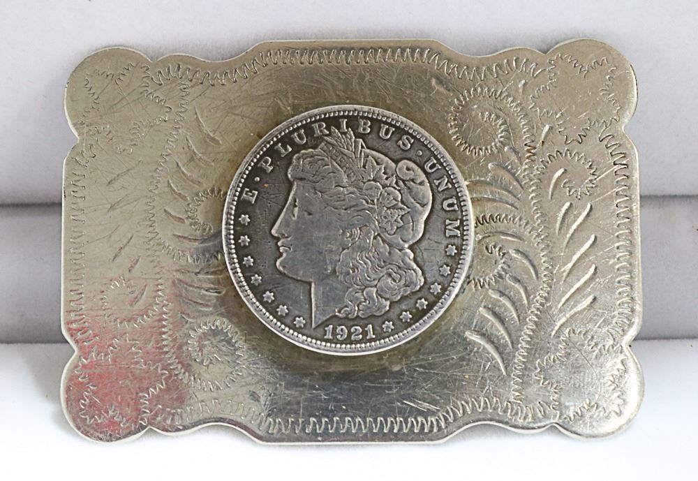 AMERICAN SILVER DOLLAR BELT BUCKLE 1921 MORGAN