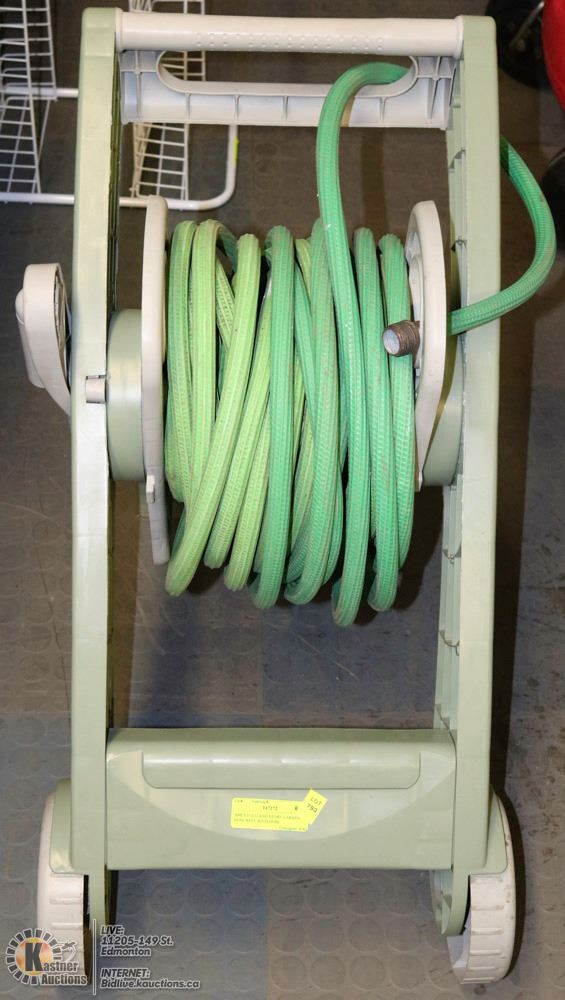 AMES FOLD AND STORE GARDEN HOSE REEL WITH HOSE