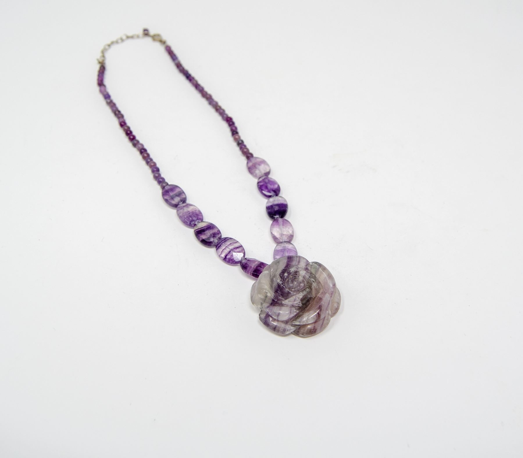 AMETHYST ROSE PENDANT AND BEADED NECKLACE