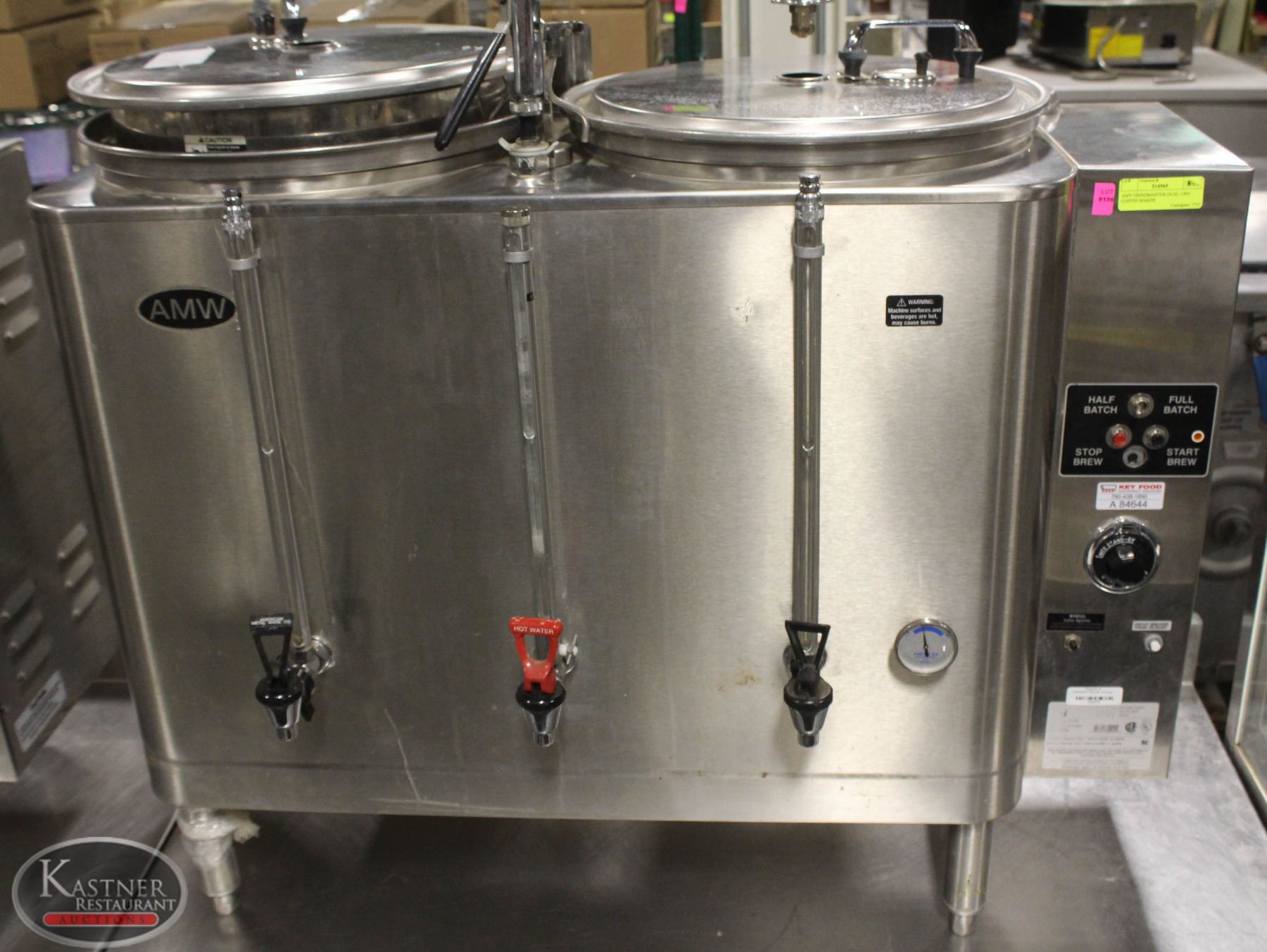 W/ HOT WATER TAP. * ONLY ONE COFFEE BASKET FILTER + TWO LIDS. M#: 7776E, SINGLE-PHASE(3-WIRE) 120V/240V, 48A, 11.5KW. SINGLE-PHASE (3-WIRE) 120/208V, 41A, 8.6KW. REQUIRES 30-70 PSIG WATER PRESSURE. 40" X 20" X 36"
