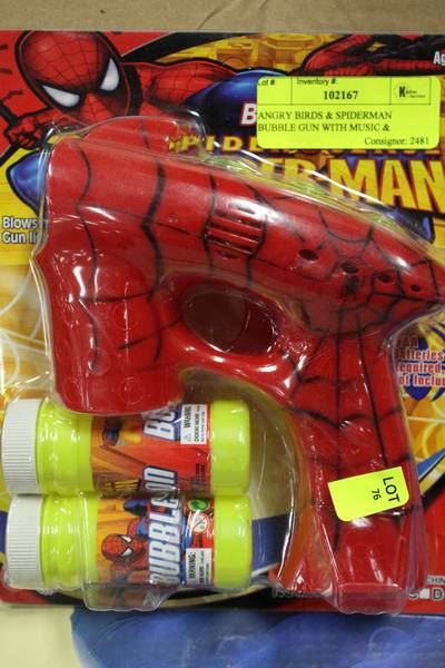 ANGRY BIRDS & SPIDERMAN BUBBLE GUN WITH MUSIC &