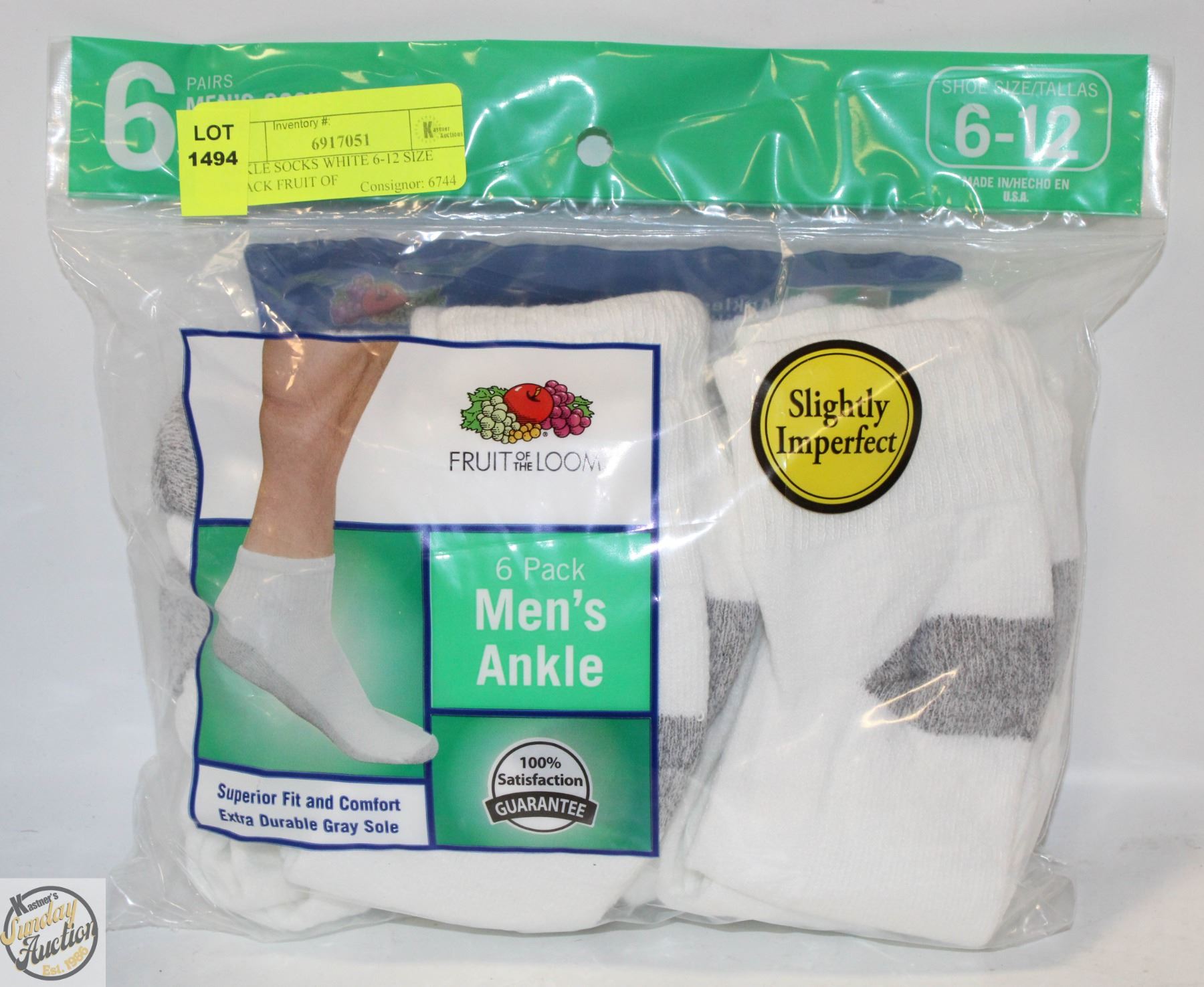 ANKLE SOCKS WHITE 6-12 SIZE 6-PACK FRUIT OF THE LO