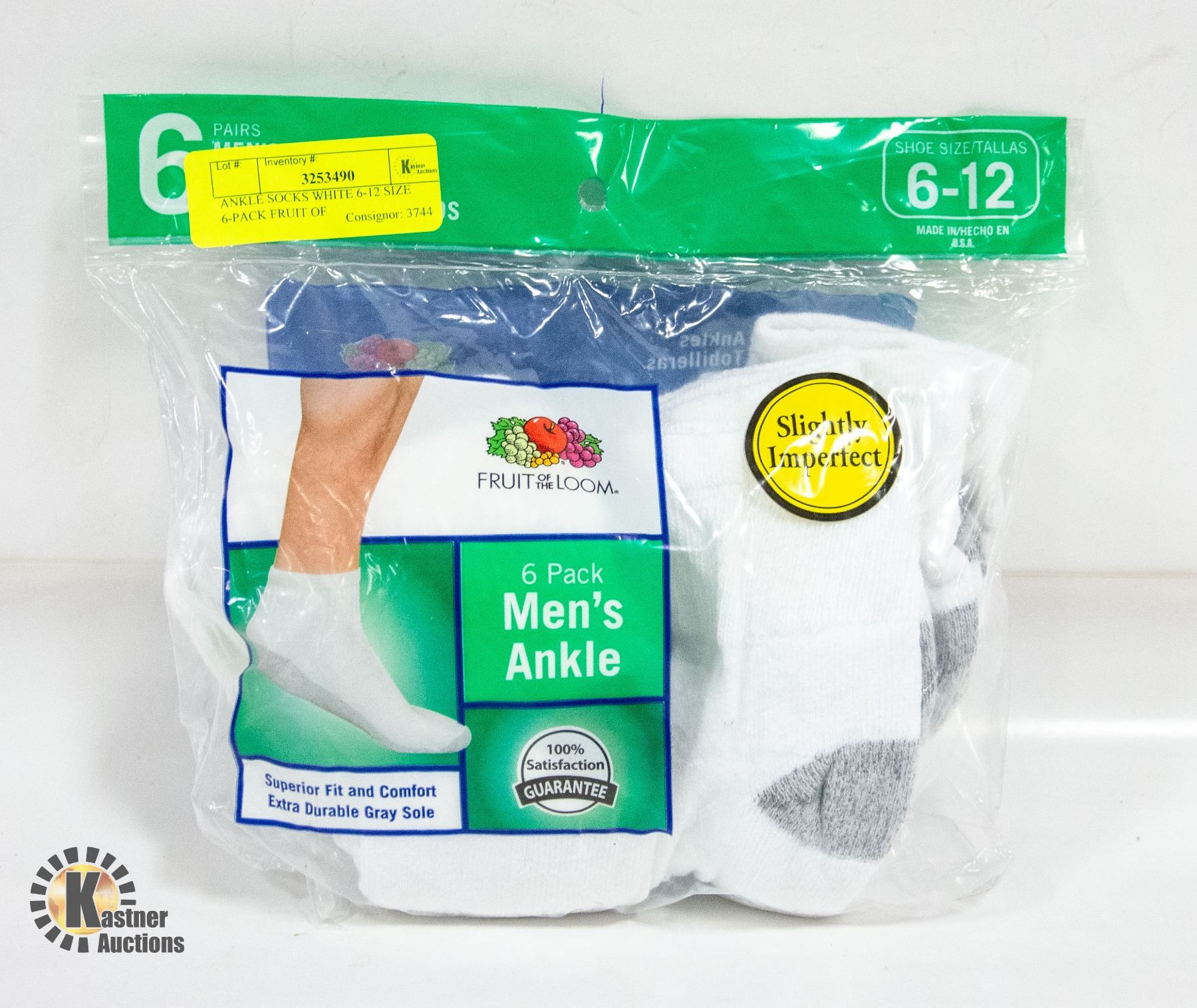 ANKLE SOCKS WHITE 6-12 SIZE 6-PACK FRUIT OF