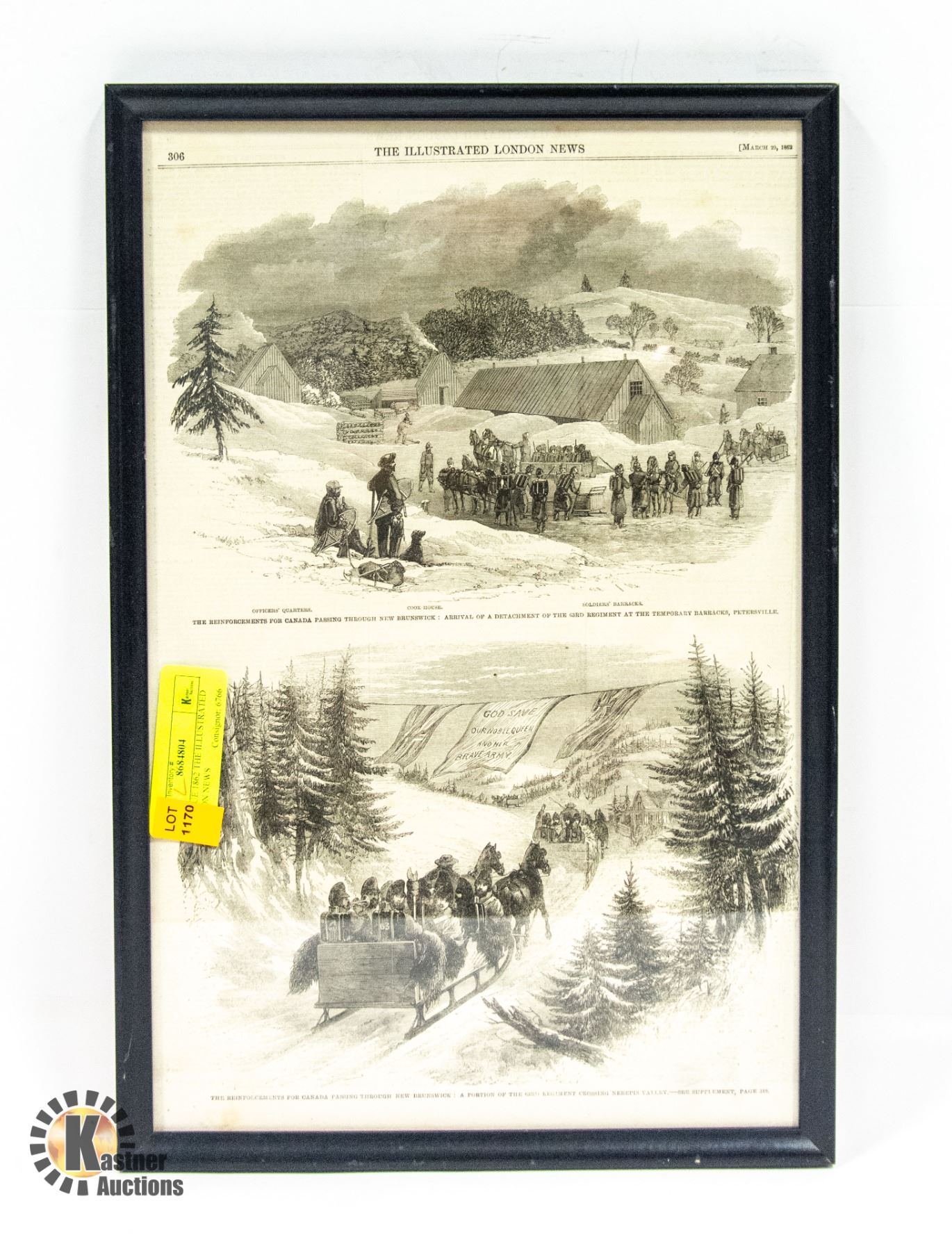 FRAMED NEWSPAPER. FEATURING CANADIAN SCENES WITH DESCRIPTION **ALL ITEMS MUST BE REMOVED BY 5PM SATURDAY, JULY 8ST 2023. ALL REMAINING ITEMS WILL BE SUBJECT TO A $6.00 PER DAY STORAGE CHARGE. ANY ITEMS REMAINING AFTER MONDAY, JULY 24TH, 2023 WILL BE CONSIDERED FORFEITED. NO REFUNDS WILL BE ISSUED FOR FORFEITED ITEMS. TO SCHEDULE A PICK UP APPOINTMENT CLICK HERE