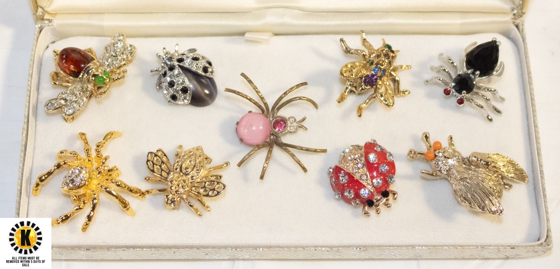 ALONG WITH 8 OTHER INSECT/BEETLE BROOCHES (1950'S,60'S,70'S) IN A VTG JEWELRY CASE