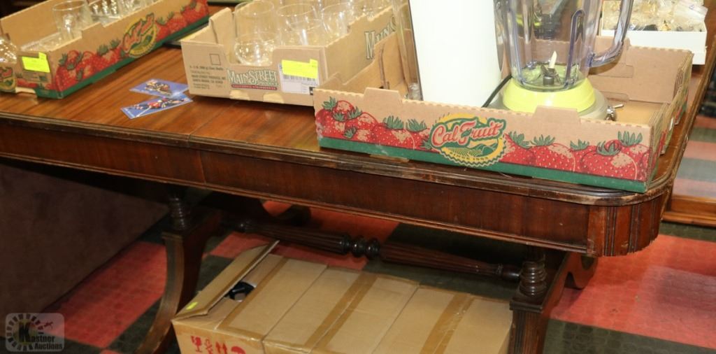 MADE BY MERRIAM, HALL & CO TABLE TOP MEASURES 41.5" W X 60"L TABLE PEDESTAL MEASURES 28"W X 26.5"H TABLE HAS HAND CARVED WOOD DETAILING AND HAS BRASS PLATES COVERING ALL FOUR FEET