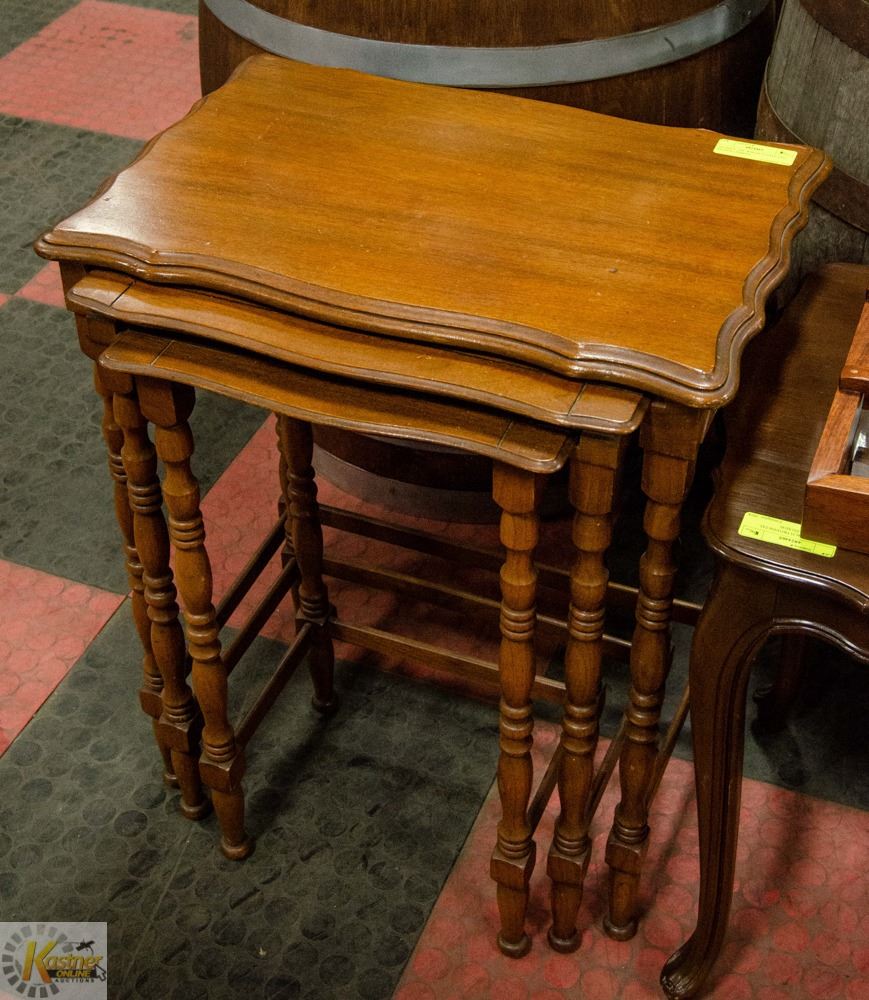ANTIQUE 3 PC WALNUT GATE LEG NESTING TABLES