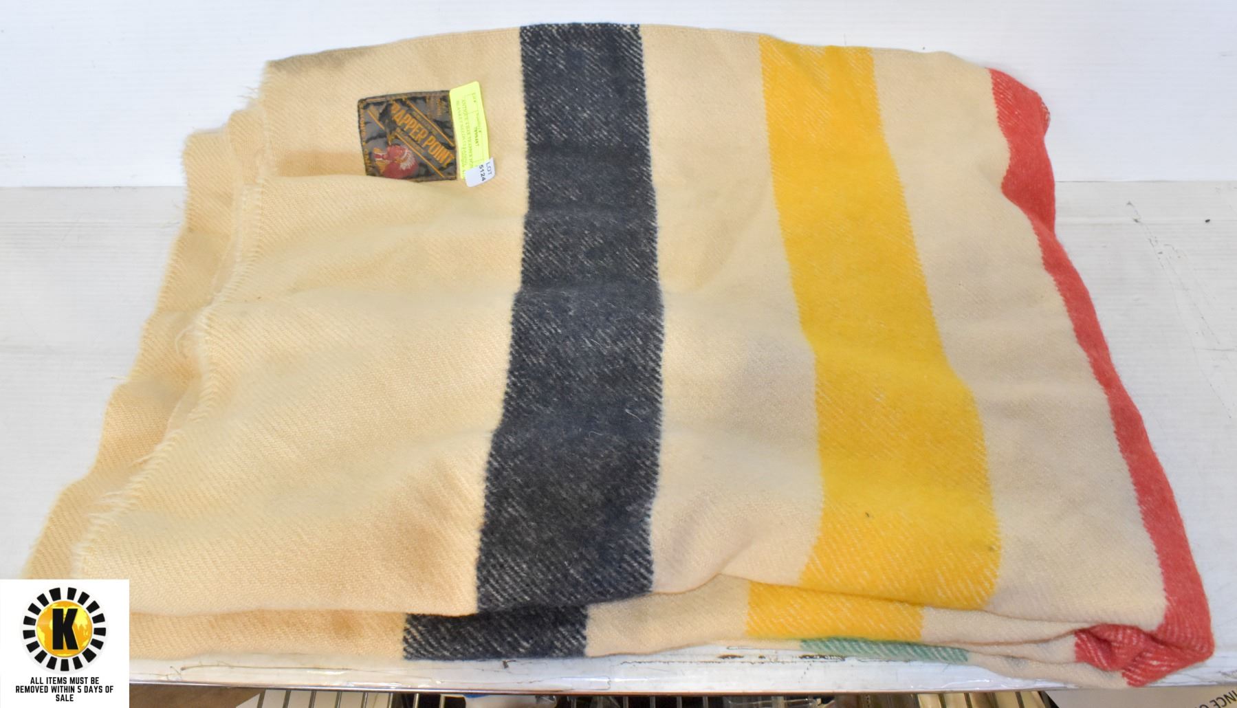 ANTIQUE 4 BAR TRAPPER POINT BLANKET NEEDS CLEANING