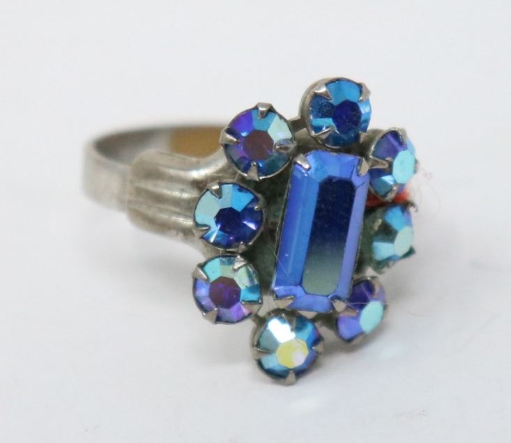 ANTIQUE ADJUSTABLE BLUE COSTUME JEWELLERY RING