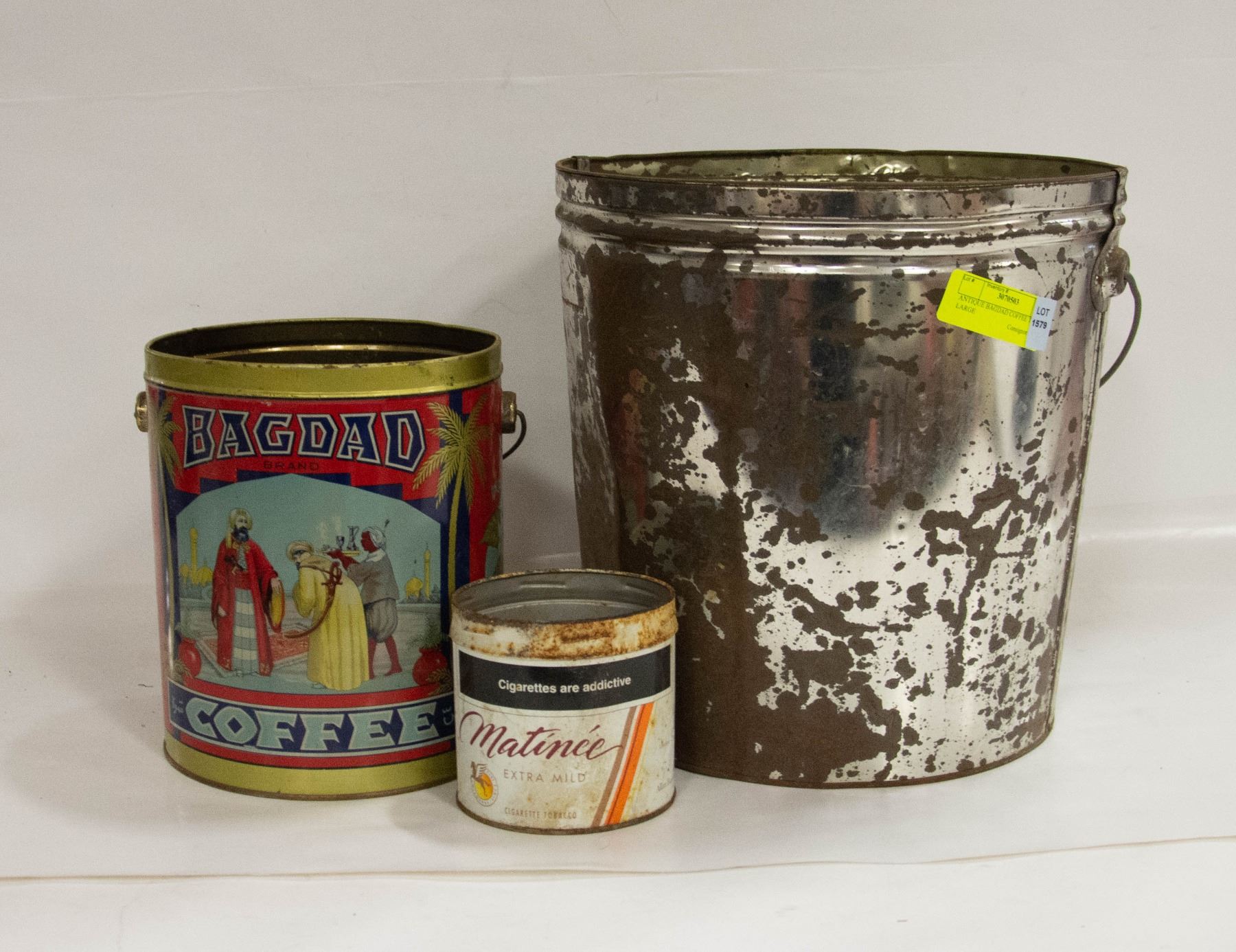 METAL CAN W/HANDLE & MATINEE TOBACCO CAN **ALL ITEMS MUST BE REMOVED BY 5PM SATURDAY, JUNE 4TH 2023. ALL REMAINING ITEMS WILL BE SUBJECT TO A $6.00 PER DAY STORAGE CHARGE. ANY ITEMS REMAINING AFTER MONDAY, JUNE 19TH, 2023 WILL BE CONSIDERED FORFEITED. NO REFUNDS WILL BE ISSUED FOR FORFEITED ITEMS. TO SCHEDULE A PICK UP APPOINTMENT CLICK HERE