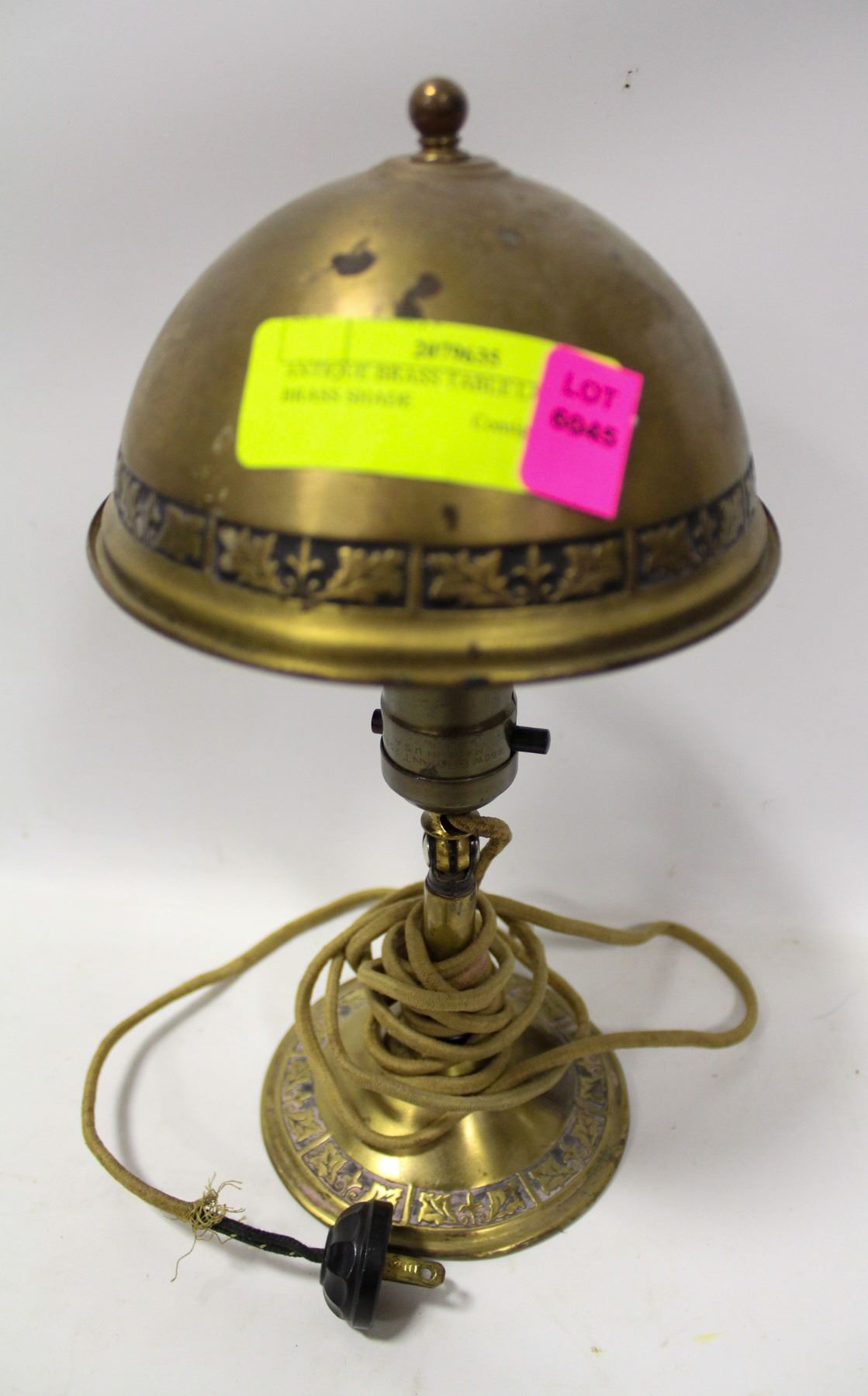 ANTIQUE BRASS TABLE LAMP WITH BRASS SHADE