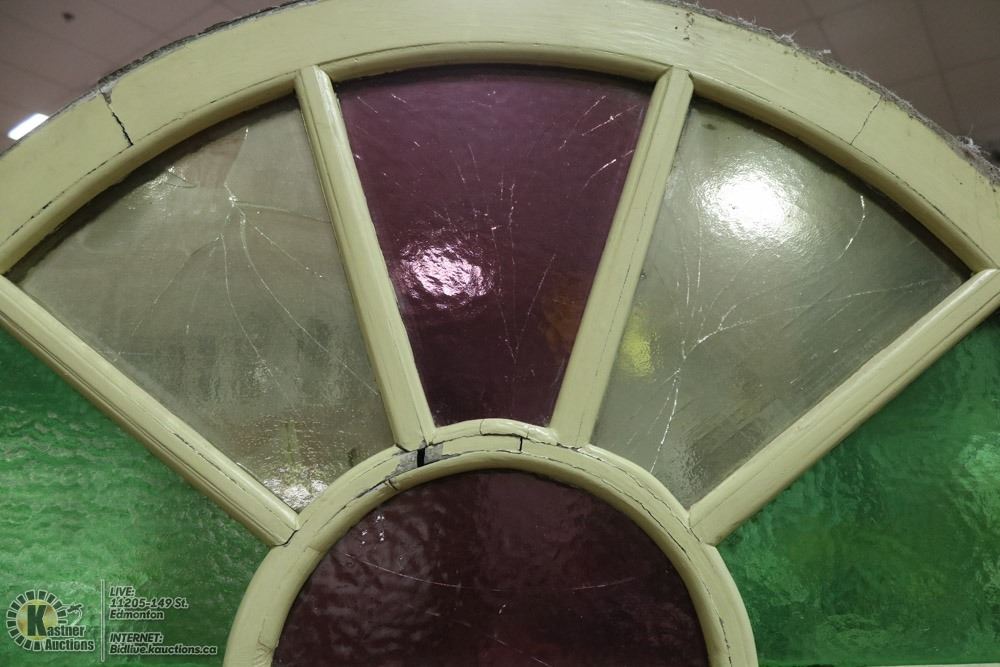 ANTIQUE CATHEDRAL STAINED GLASS WINDOW 3FTX6.5FT