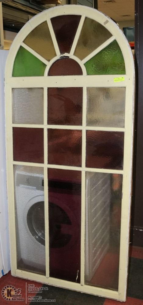 ANTIQUE CATHEDRAL STAINED GLASS WINDOW 3FTX6.5FT