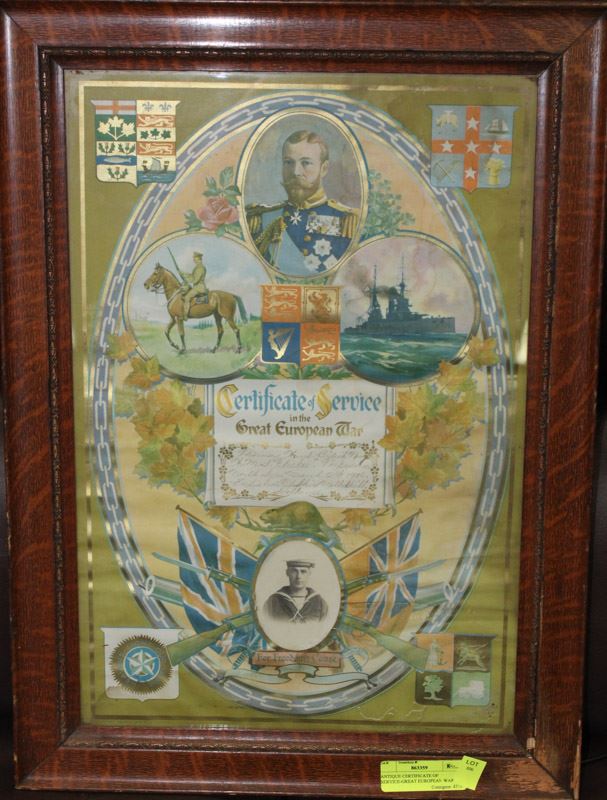 ANTIQUE CERTIFICATE OF SERVICE-GREAT EUROPEAN WAR