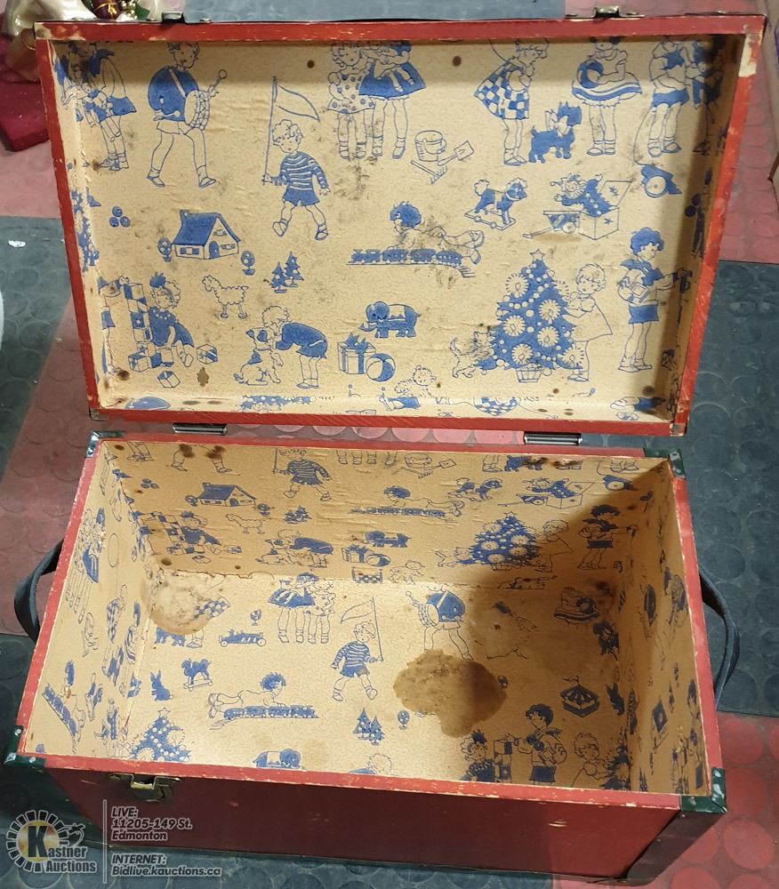ANTIQUE CHILDREN'S WOODEN BOX 15 INCHES LONG 9 INCHES WIDE 9 INCHES DEEP-COLLECTIBLES