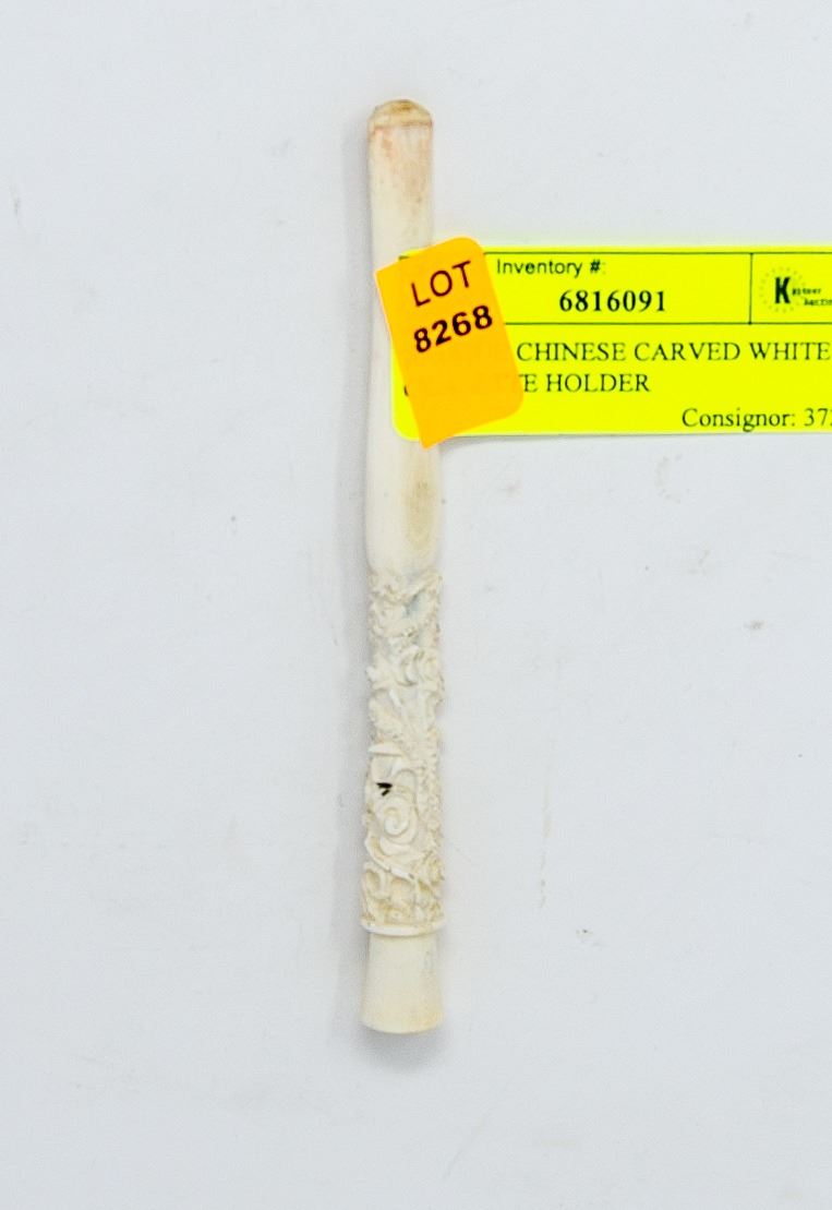 ANTIQUE CHINESE CARVED WHITE CIGARETTE HOLDER