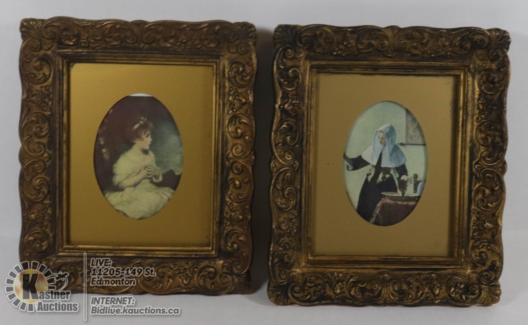 ANTIQUE FRAMED 2 PRINTS #30 AGE OF INNOCENCE REYNOLDS & #10 YOUNG WOMEN WITH WATER JUG VERMEER (LABE