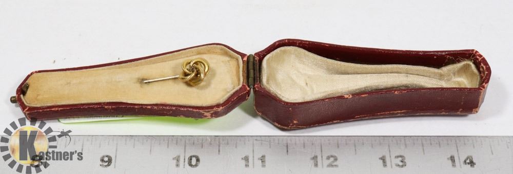 ANTIQUE GOLD HAT PIN IN COFFIN CASE BOX