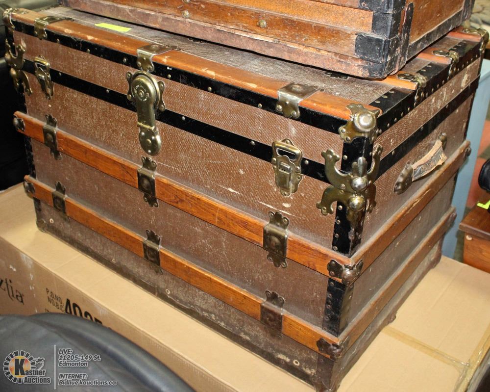 ALL ORIGINAL HARDWARE WITH LEATHER HANDLES, SHELF INSIDE 34"X21"X21"H