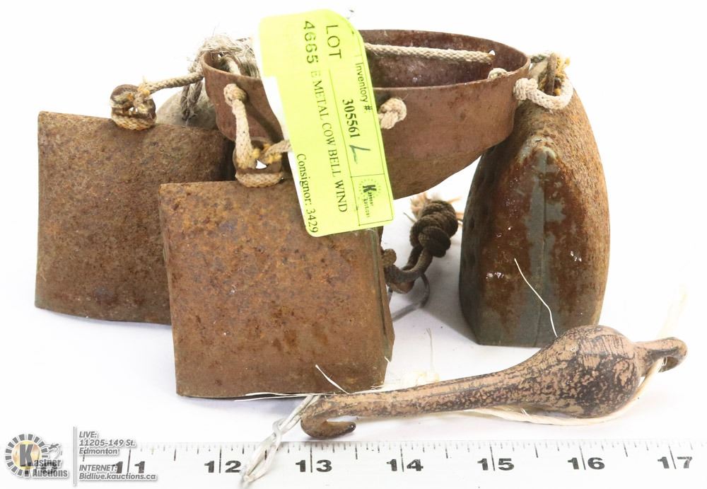 ANTIQUE METAL COW BELL WIND CHIME.