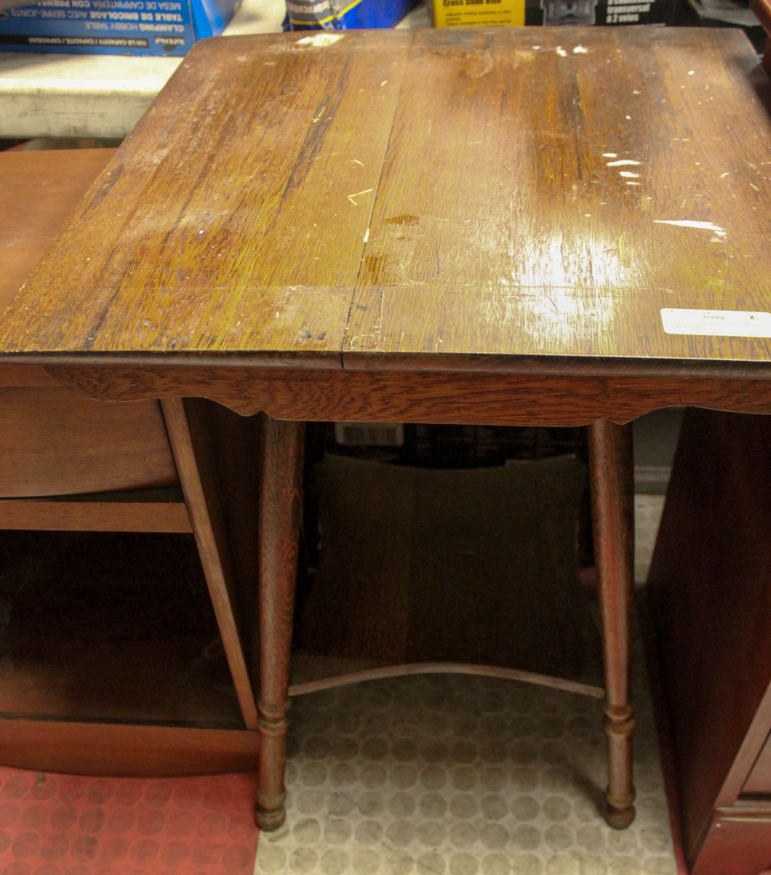 ANTIQUE OAK SIDE TABLE WITH LOWER SHELF
