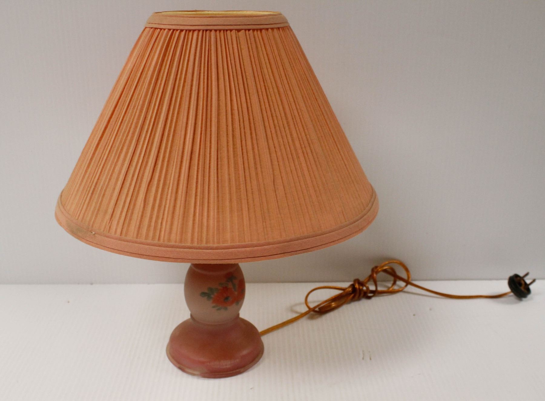 ANTIQUE PINK GLASS TABLE LAMP 14 INCH TALL