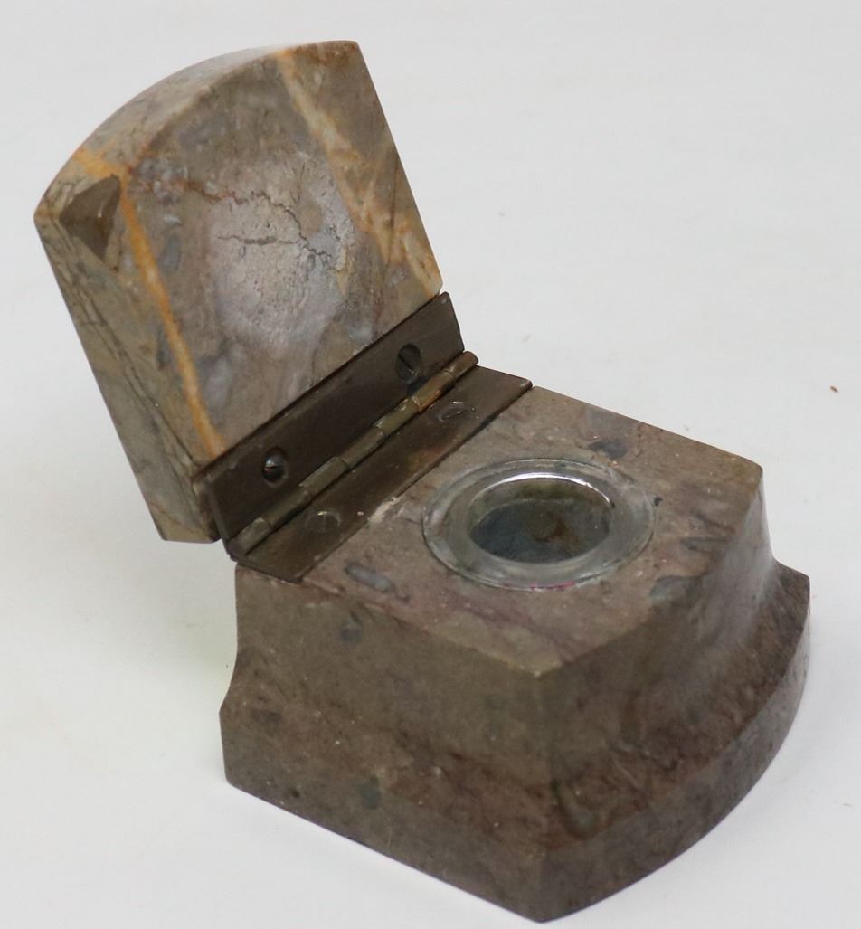 ANTIQUE POLISHED STONE INK WELL