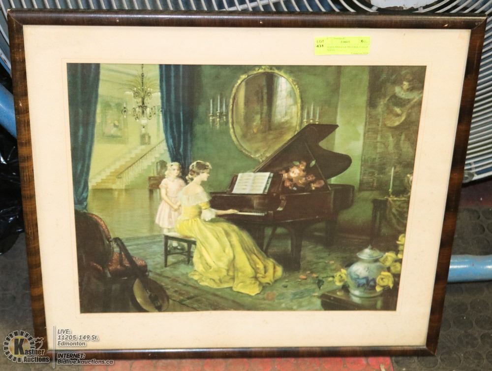 ANTIQUE PRINT OF MOTHER, CHILD AT PIANO