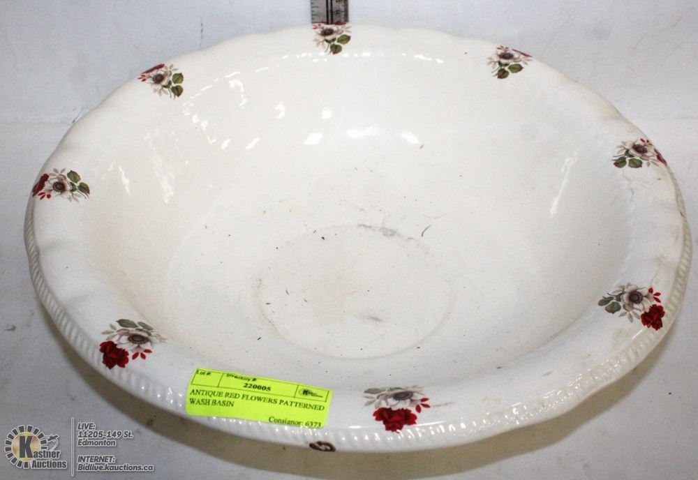 ANTIQUE RED FLOWERS PATTERNED WASH BASIN