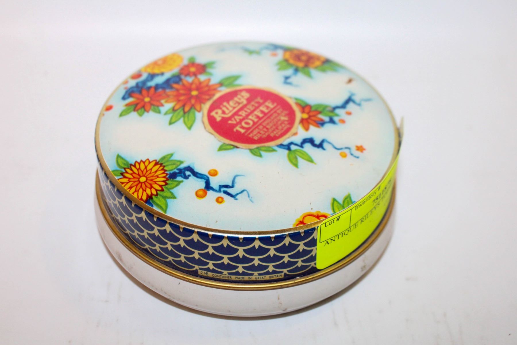 ANTIQUE RILEYS TOFFEE TIN W LID