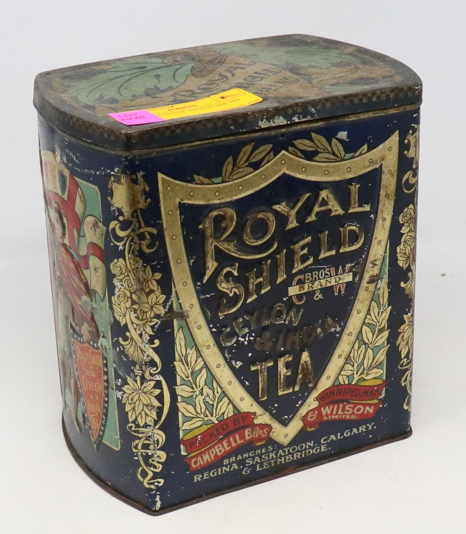 ANTIQUE ROYAL SHIELD TEA TIN BLUE