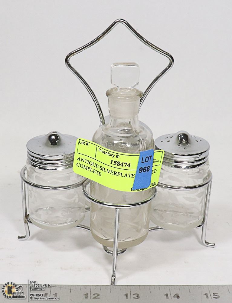 ANTIQUE SILVER-PLATE CRUET SET/ COMPLETE